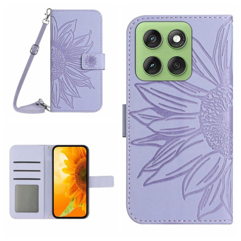 For Motorola Edge 60 5G HT04 Skin Feel Sun Flower Embossed Flip Leather Phone Case with Lanyard(Purple)