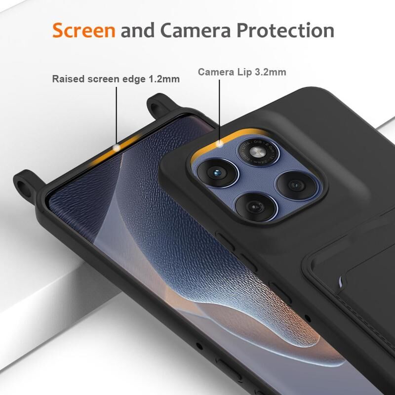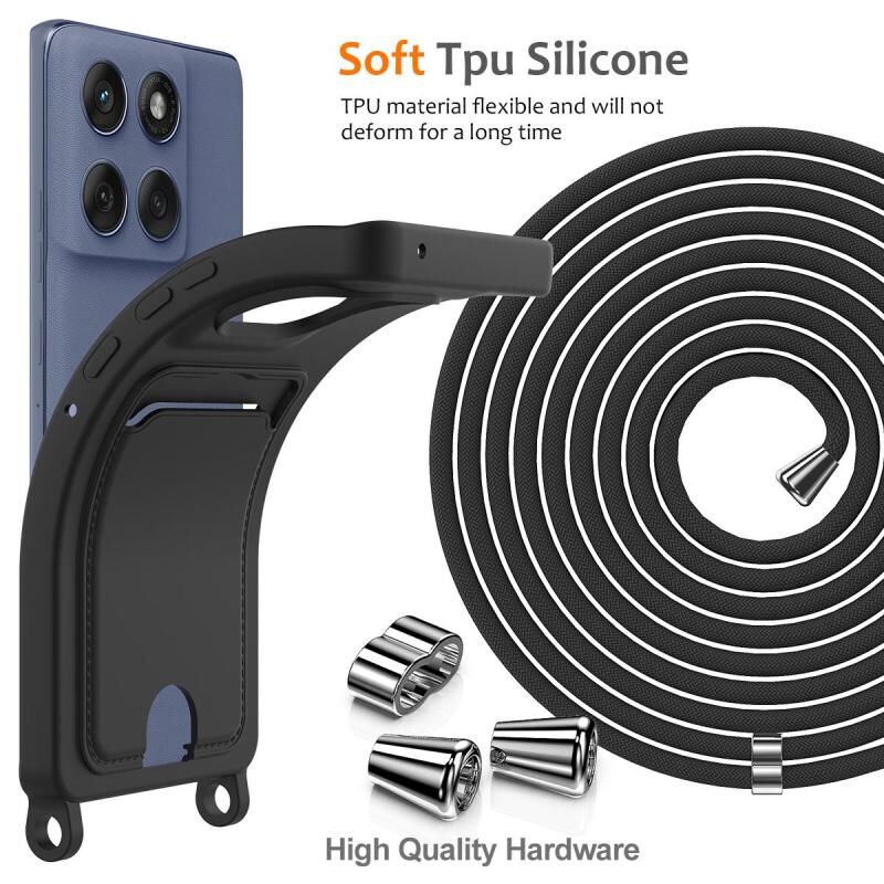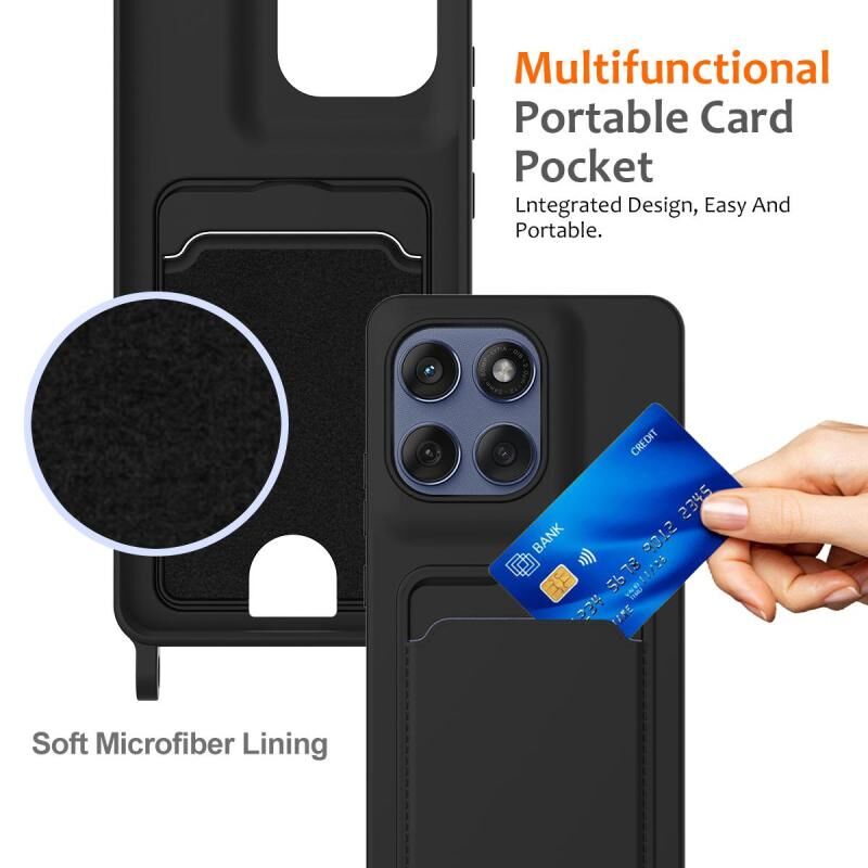 For Motorola Edge 60 / 60s /60 Fusion Integrated Card Bag Solid Color Liquid Silicone Phone Case with Lanyard(Black)