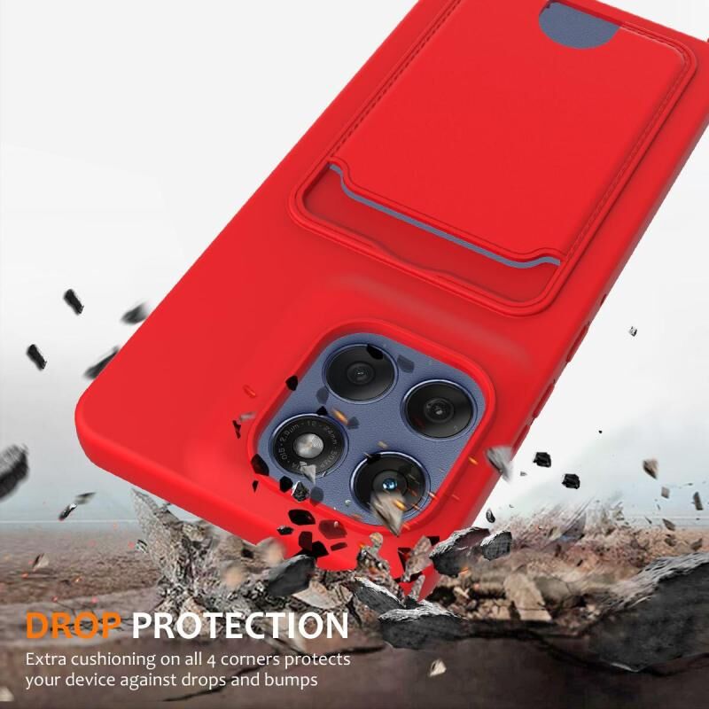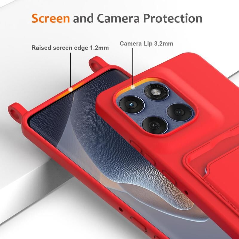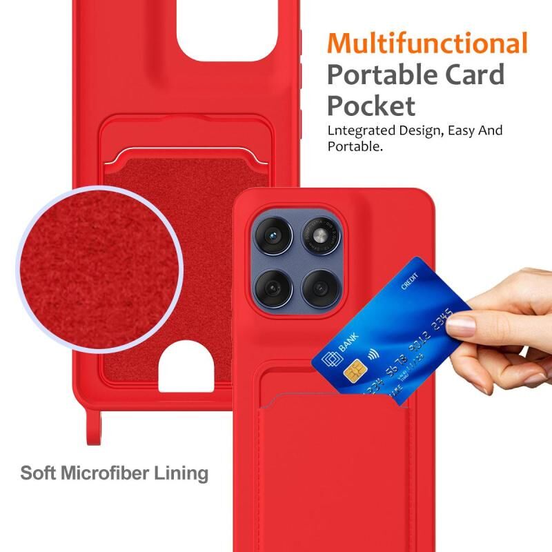 For Motorola Edge 60 / 60s /60 Fusion Integrated Card Bag Solid Color Liquid Silicone Phone Case with Lanyard(Red)