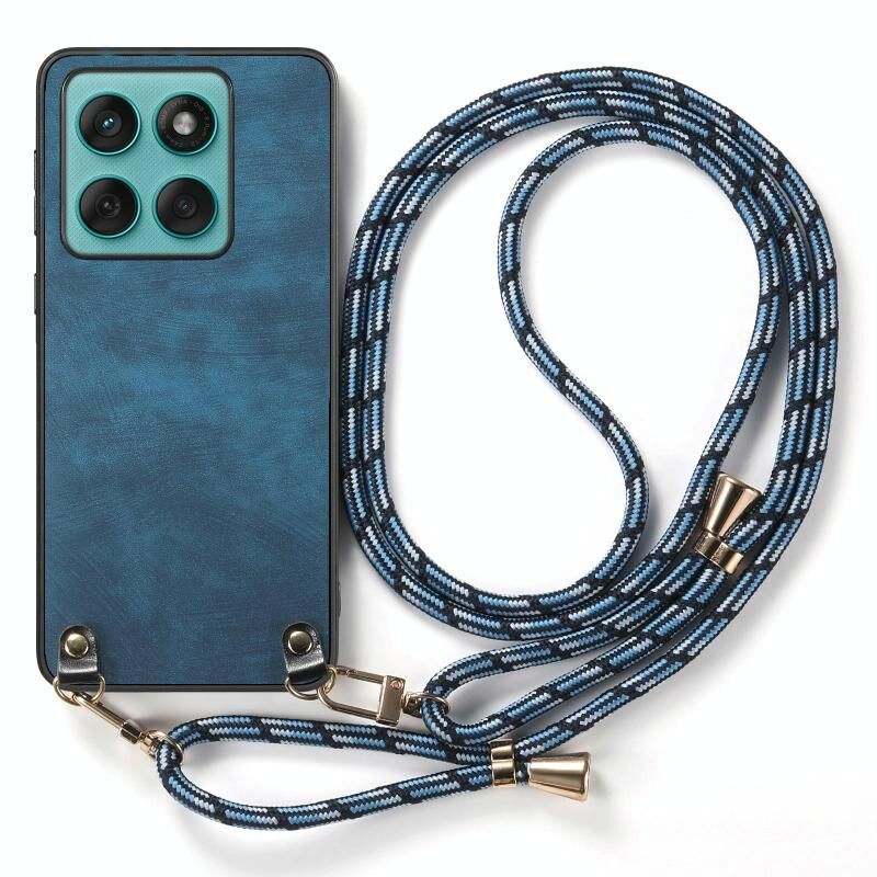For Motorola Edge 60 / 60s Vintage Leather PC Back Cover Phone Case with Crossbody Strap(Blue)