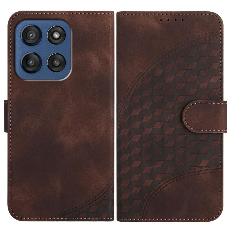 Θήκη δερμάτινη για Motorola Edge 60 με ανάγλυφο σχέδιο κεφαλής ελέφαντα και κορδόνι (Καφέ)