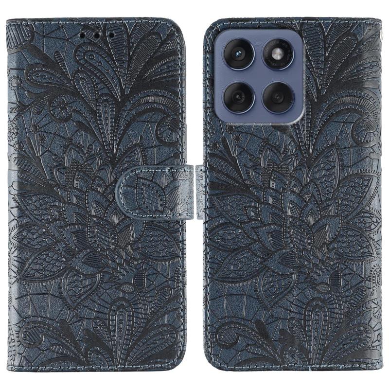 For Motorola Edge 60 Fusion 5G Lace Flower Embossing Flip Leather Phone Case(Dark Blue)