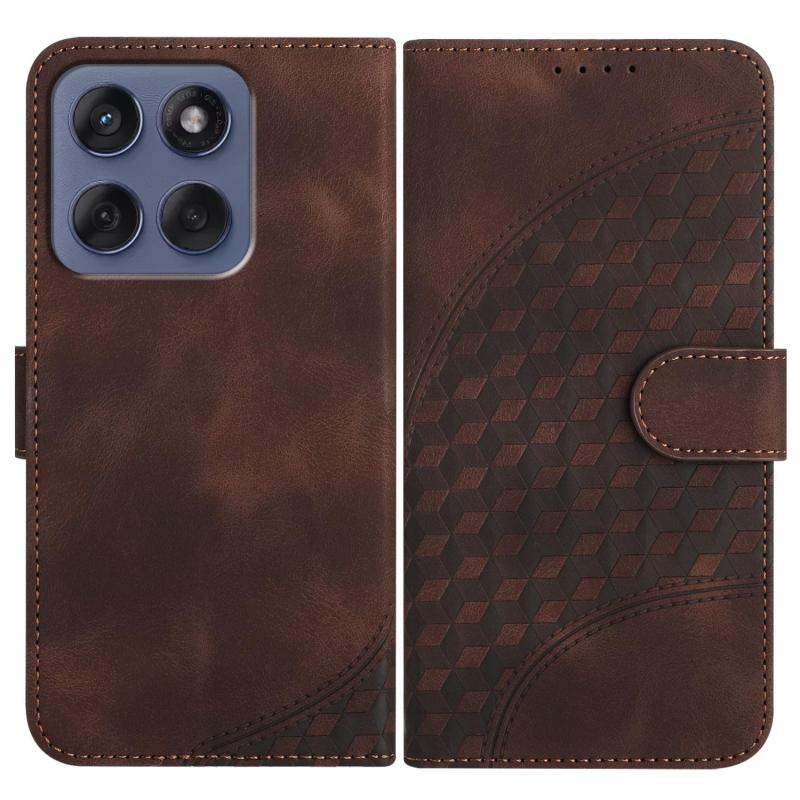 Θήκη δερμάτινη για Motorola Edge 60 Fusion / Edge 5G 2025 με ανάγλυφο σχέδιο κεφαλής ελέφαντα και λουρί (Καφέ)