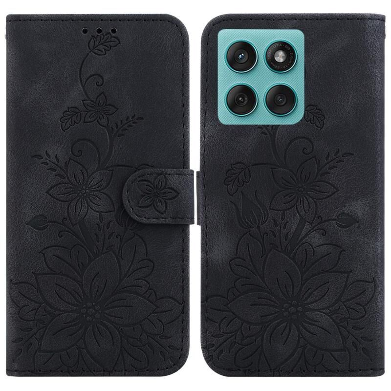 Θήκη τηλεφώνου από δέρμα με ανάγλυφο Lily για Motorola Edge 60 Fusion / Edge 5G 2025 (Μωβ)