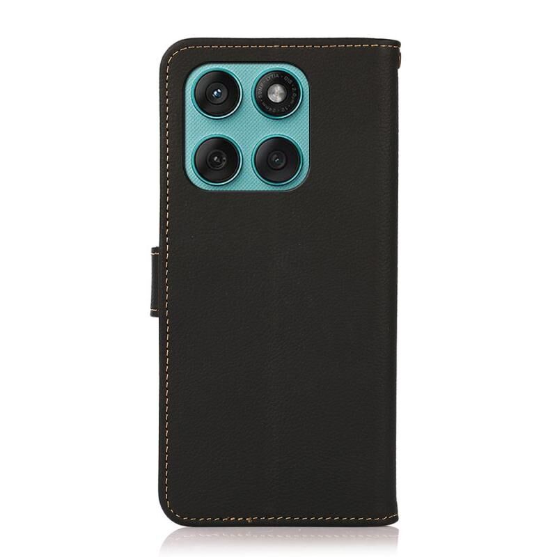 Θήκη κινητού τηλεφώνου Motorola Edge 60 Fusion KHAZNEH Custer από γνήσιο δέρμα με προστασία RFID (Μαύρο)