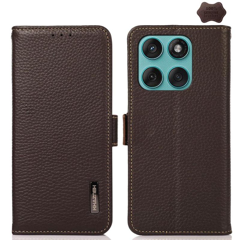 For Motorola Edge 60 Fusion KHAZNEH Side-Magnetic Litchi Genuine Leather RFID Phone Case(Brown)
