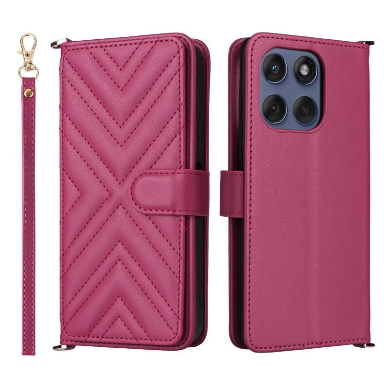 Θήκη τηλεφώνου από δέρμα για Motorola Edge 60 Fusion, πολυλειτουργική με 6 υποδοχές για κάρτες και λουρί καρπού (Ροζ)