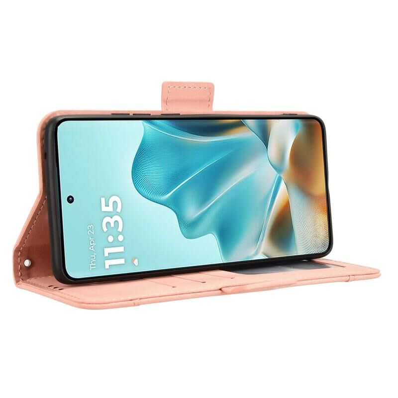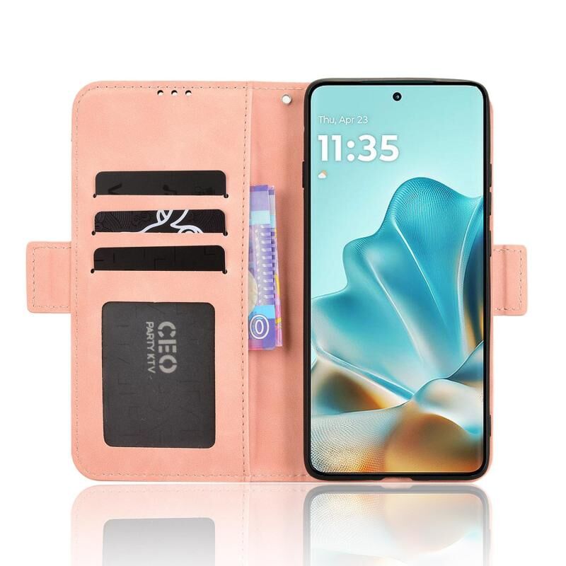 Θήκη τηλεφώνου δερμάτινη για Motorola Edge 60 Fusion με υφή μοσχαρίσιου δέρματος, θήκες καρτών (Ροζ)