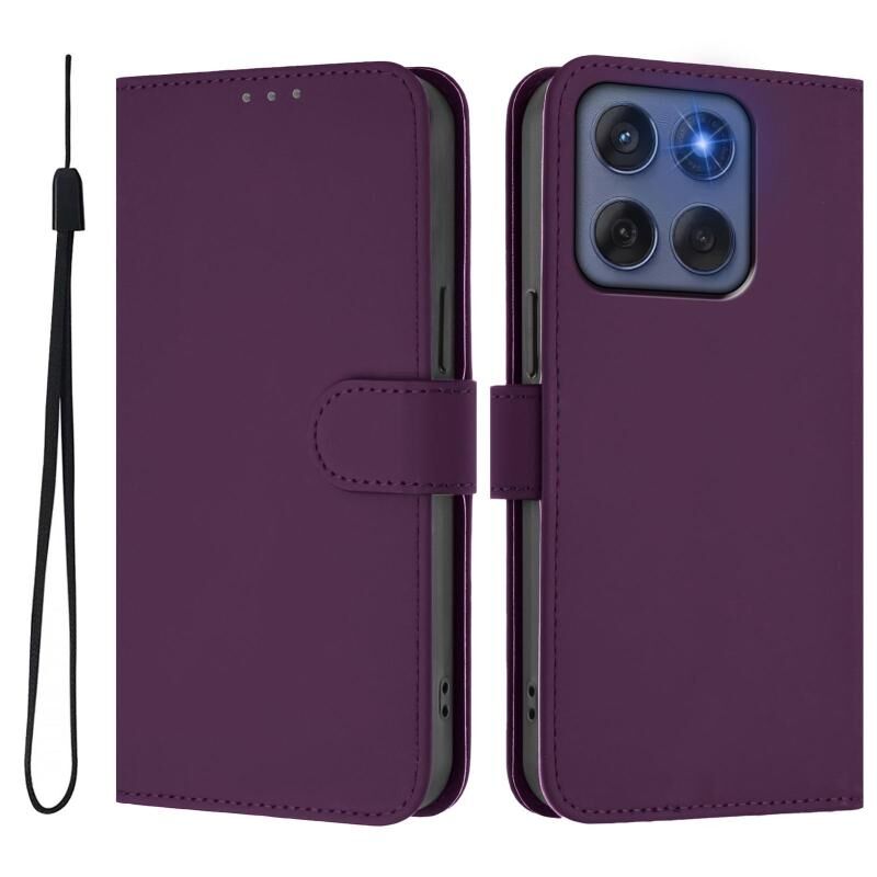 Θήκη κινητού τηλεφώνου από δέρμα με συμπαγή χρώμα για Motorola Edge 60 Fusion με λουρί (Βιολετί)