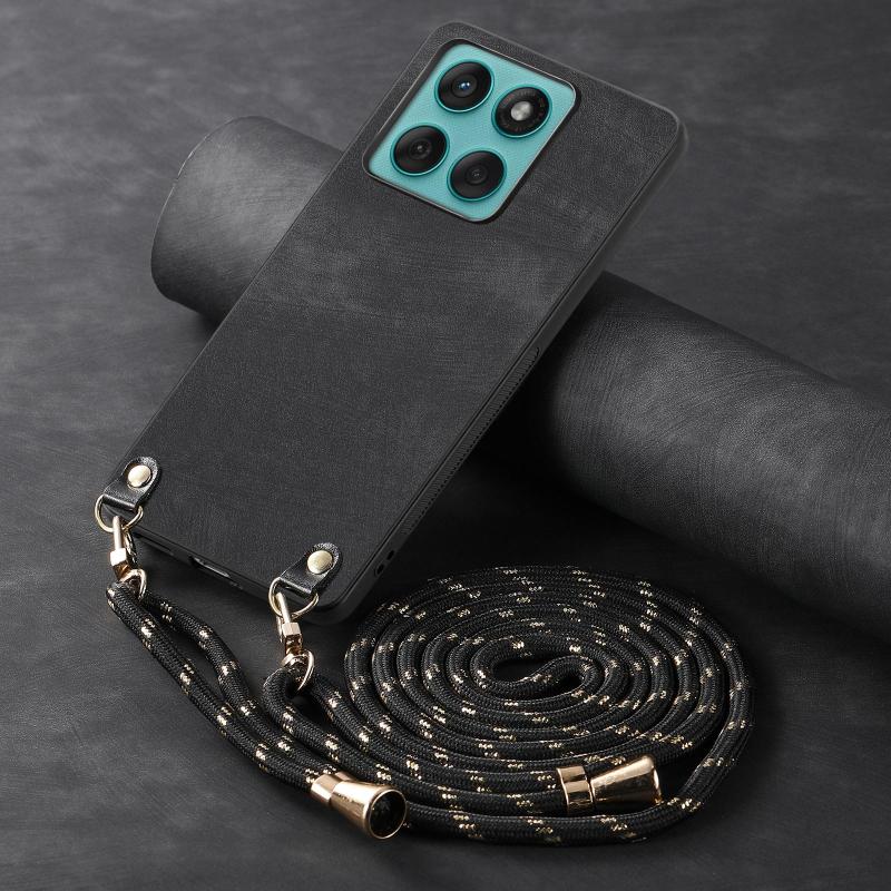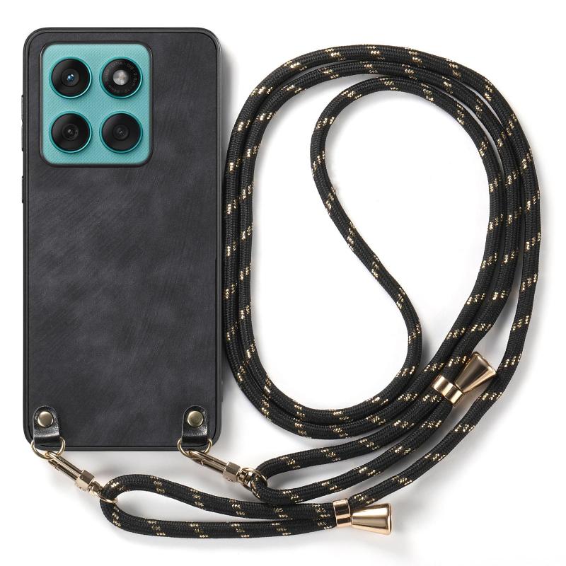 Θήκη κινητού τηλεφώνου για Motorola Edge 60 Fusion με δερμάτινη πλάτη από PC και λουρί crossbody (Μπλε)