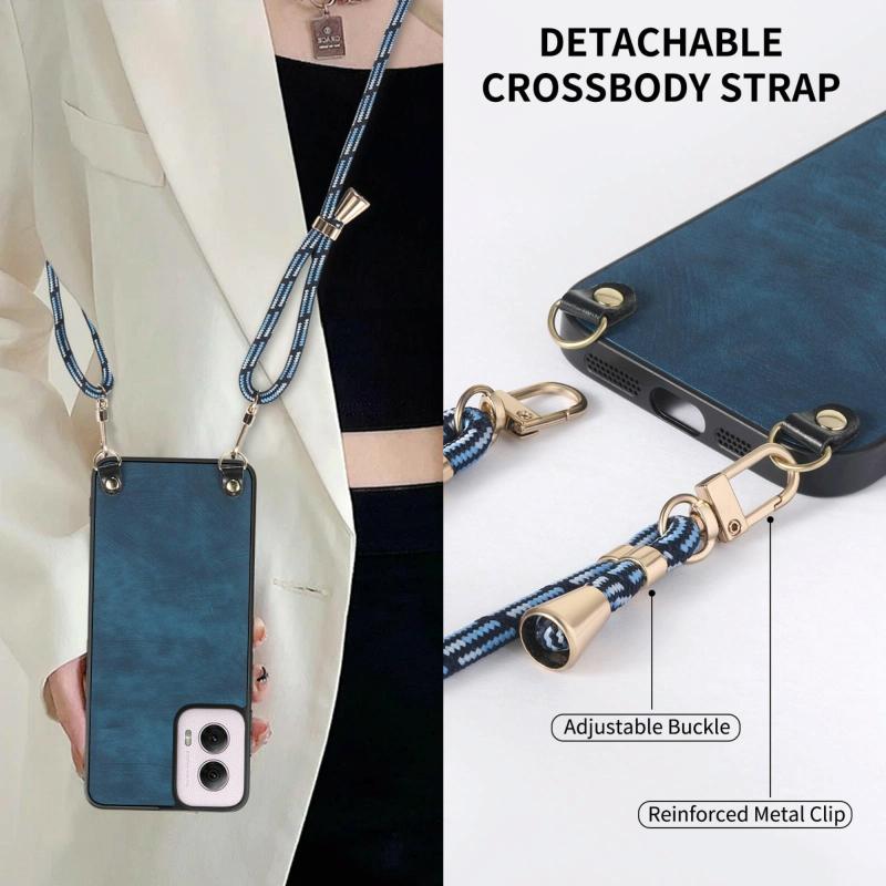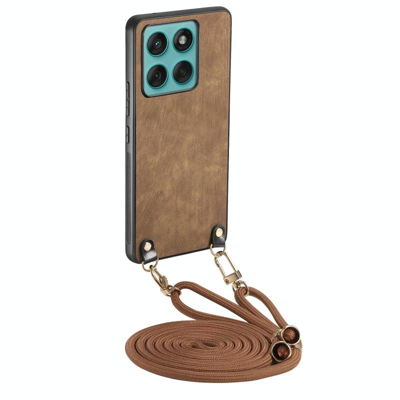 For Motorola Edge 60 Fusion Vintage Leather PC Back Cover Phone Case with Crossbody Strap(Brown)
