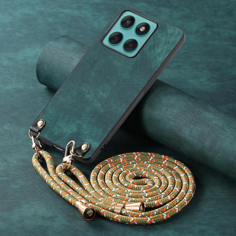 For Motorola Edge 60 Fusion Vintage Leather PC Back Cover Phone Case with Crossbody Strap(Green)