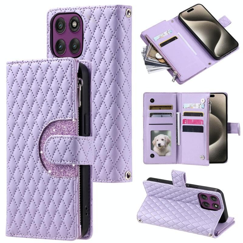 Θήκη Motorola Edge 60 Pro Glitter Lattice Zipper Wallet Δερμάτινη (Μωβ)