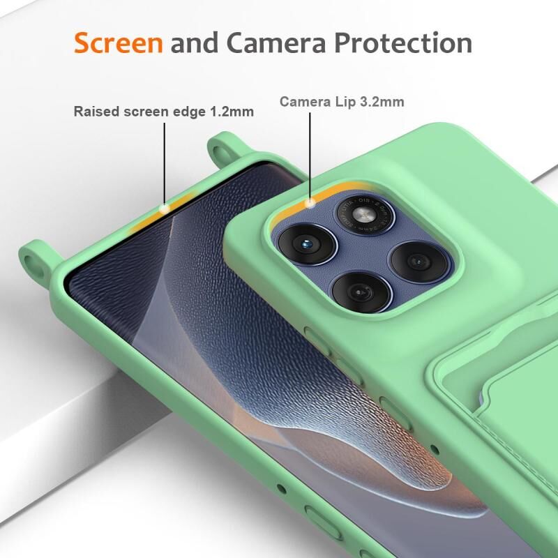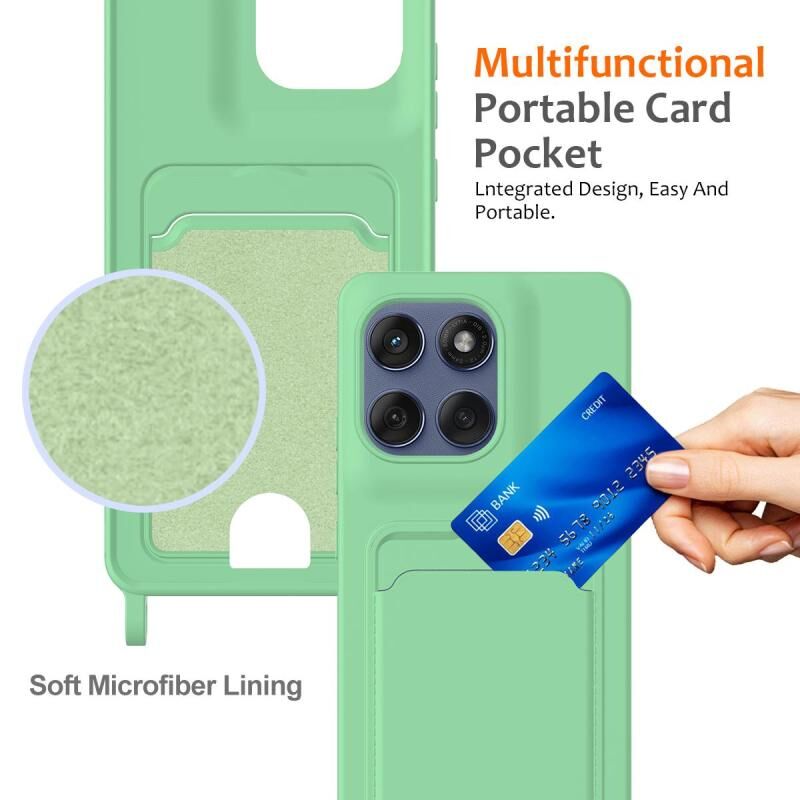 Θήκη τηλεφώνου για Motorola Edge 60 Pro με ενσωματωμένη θήκη κάρτας, μονόχρωμη, από υγρή σιλικόνη με κορδόνι (πράσινο)
