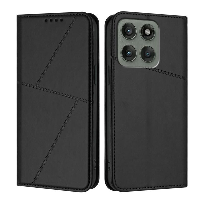 Θήκη τηλεφώνου από δέρμα με μαγνητικό κλείσιμο και ματ φινίρισμα για Motorola Edge 60 Pro (Μαύρο)
