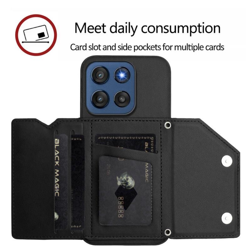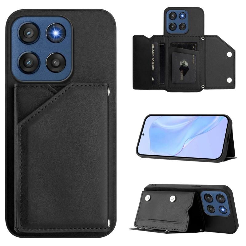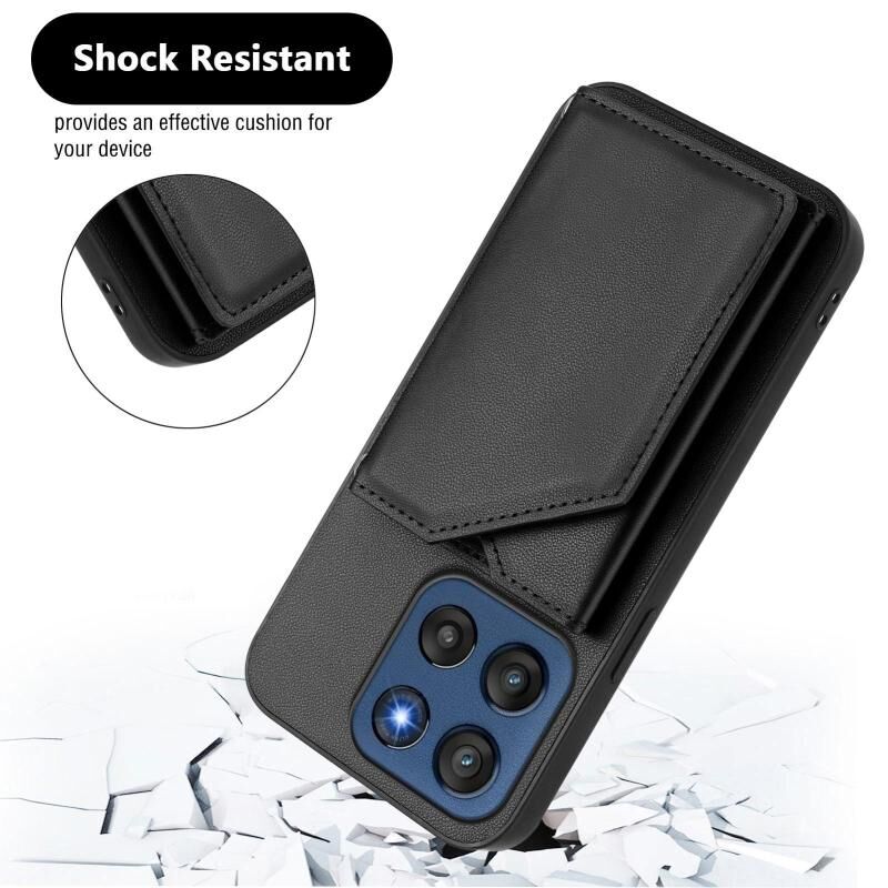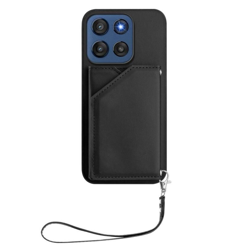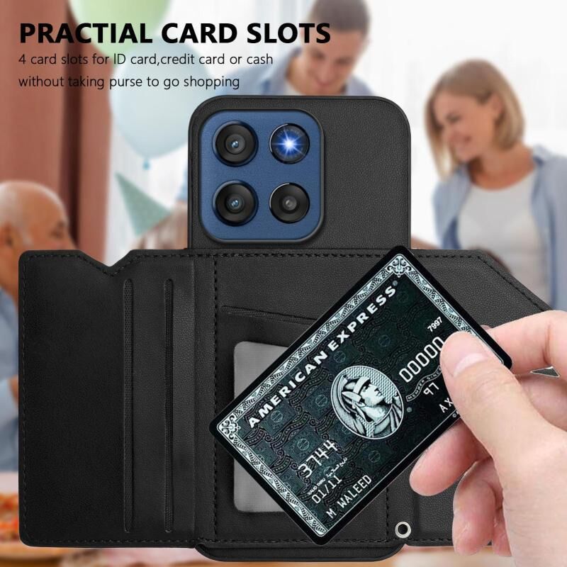 Θήκη τηλεφώνου για Motorola Edge 60 Stylus 5G με αίσθηση δέρματος, τέσσερις θήκες για κάρτες και λουρί καρπού (Μαύρο)
