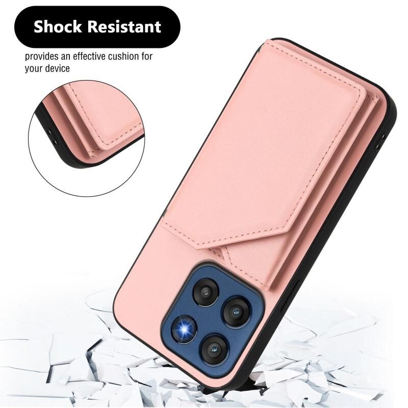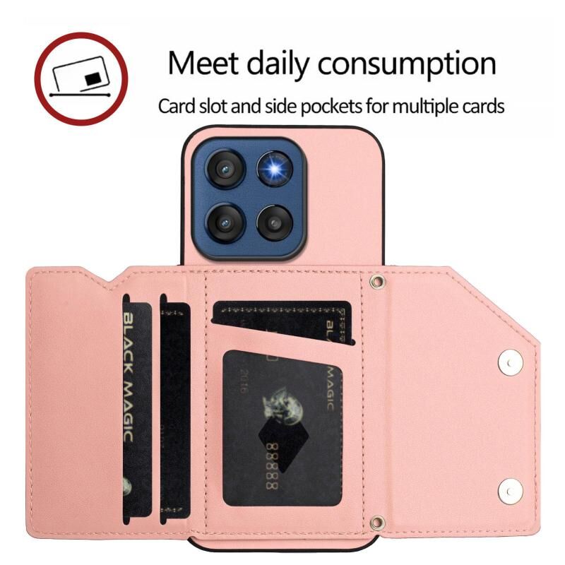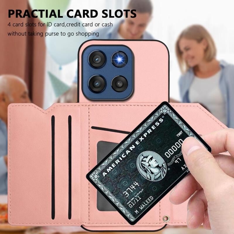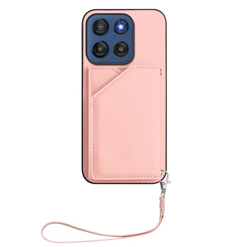 Θήκη τηλεφώνου για Motorola Edge 60 Stylus 5G με αίσθηση δέρματος, τέσσερις θήκες για κάρτες και λουρί καρπού (ρόζ)