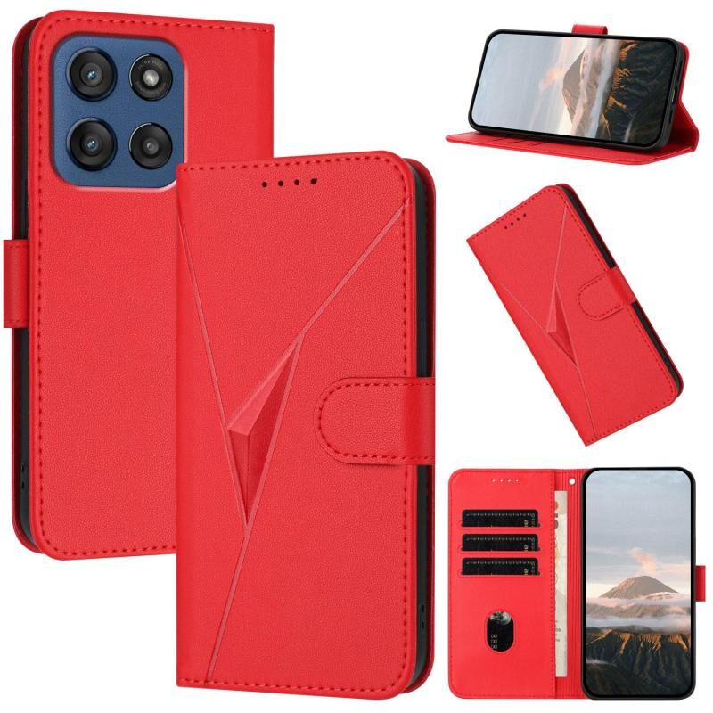 Θήκη τηλεφώνου δερμάτινη για Motorola Edge 60 με σχέδιο τριγώνου και αγκράφα (Σκούρο Μωβ)