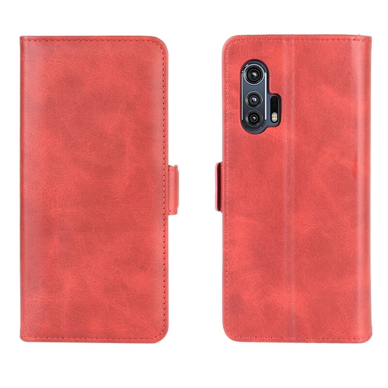 Θήκη δερμάτινη τύπου βιβλιαρίου με μαγνητικό κούμπωμα διπλής όψης, οριζόντιας διάταξης, για Motorola Edge+, με βάση στήριξης, θήκες για κάρτες και λειτουργία πορτοφολιού (Κόκκινο)
