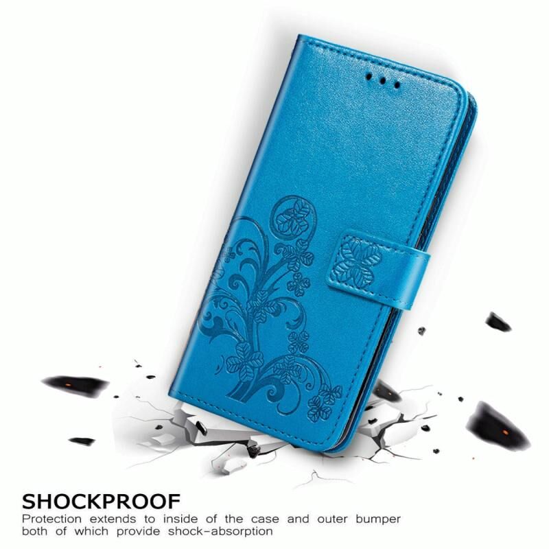 Για Motorola Edge Θήκη κινητού τηλεφώνου από δέρμα με σχέδιο τριφυλλιού, ανάγλυφη αγκράφα, λουρί, θήκη για κάρτες, πορτοφόλι και λειτουργία βάσης (Μπλε)