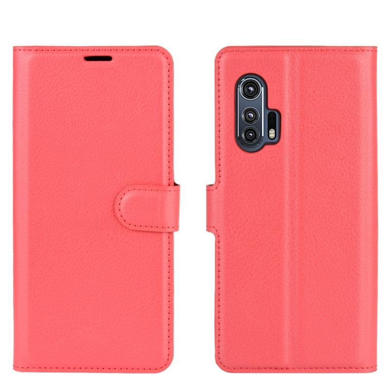 Θήκη προστασίας οριζόντιας αναδίπλωσης με υφή Litchi για Motorola Edge+ με βάση στήριξης & υποδοχές καρτών & πορτοφόλι (Κόκκινο)