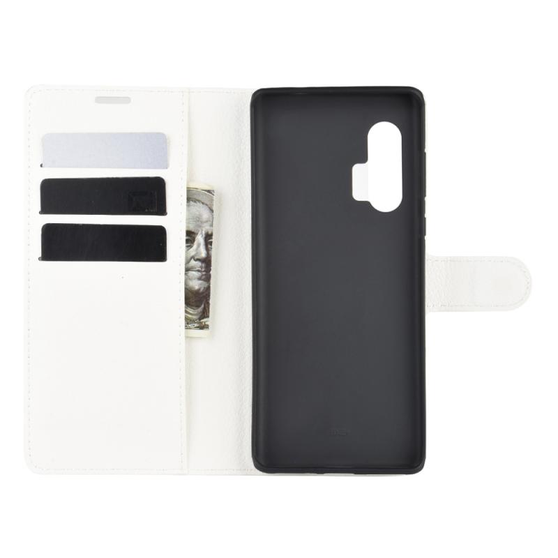 Θήκη προστασίας οριζόντιας αναδίπλωσης με υφή Litchi για Motorola Edge+ με βάση στήριξης & υποδοχές καρτών & πορτοφόλι (Λευκό)