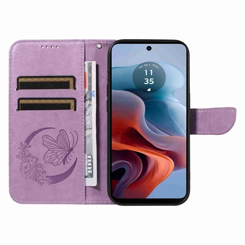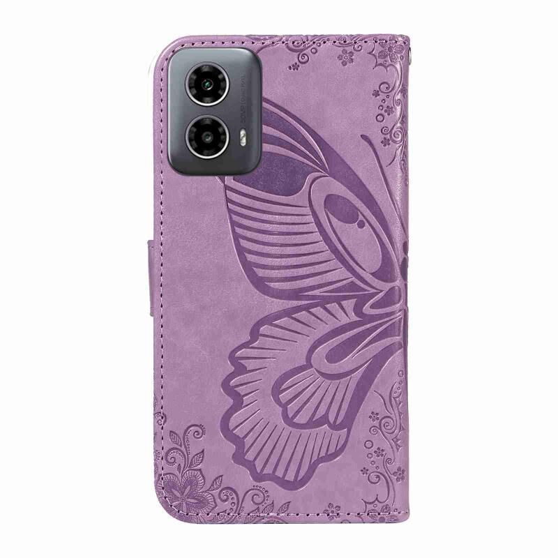 Θήκη τηλεφώνου από δέρμα με ανάγλυφο σχέδιο πεταλούδας Swallowtail για Motorola Edge Moto G34 (Μπλε)