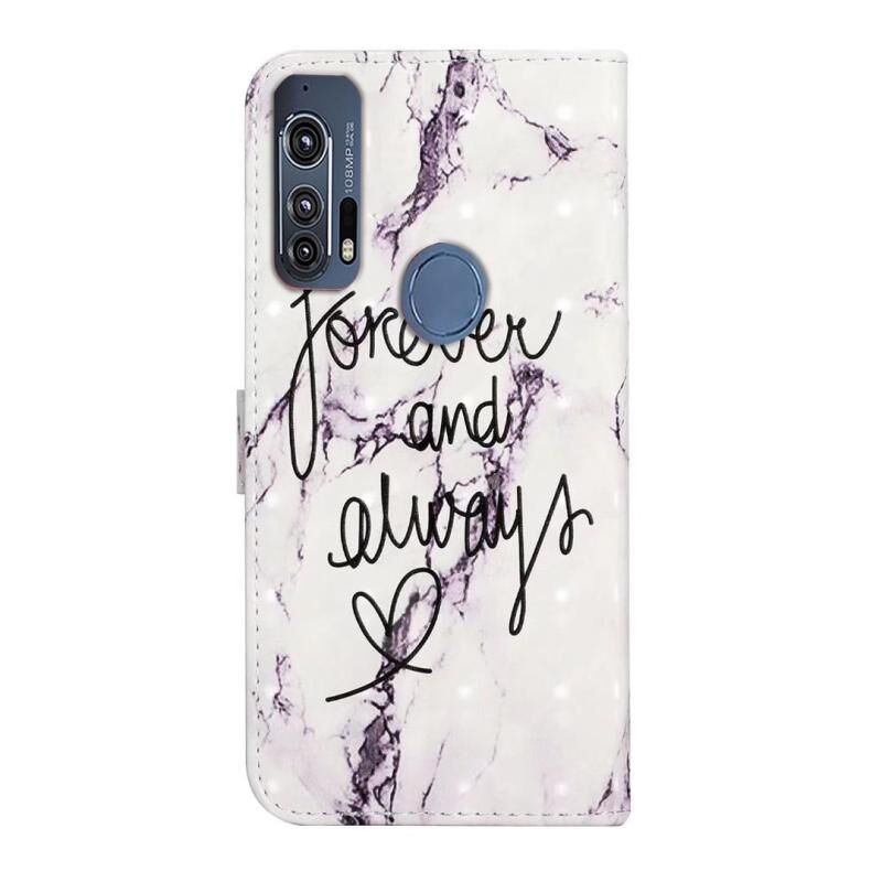Θήκη κινητού τηλεφώνου δερμάτινη με ανάγλυφο σχέδιο λαδιού 3D για Motorola Edge+ (Μάρμαρο με λέξεις)