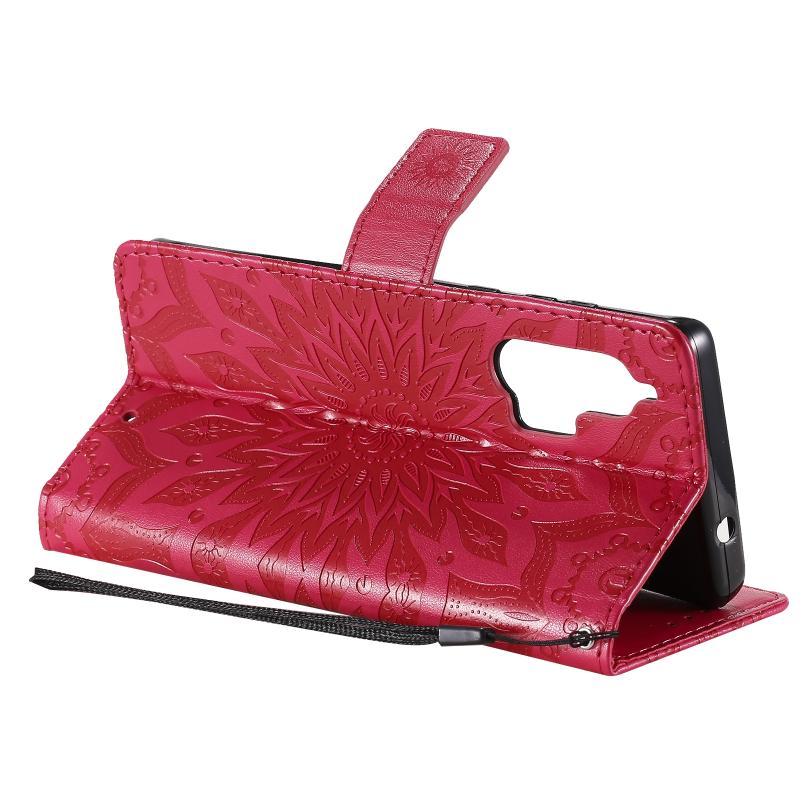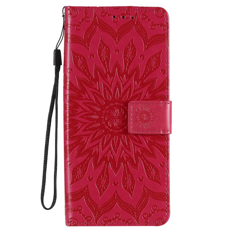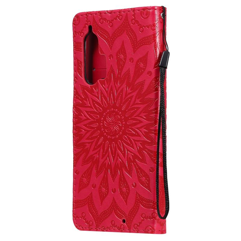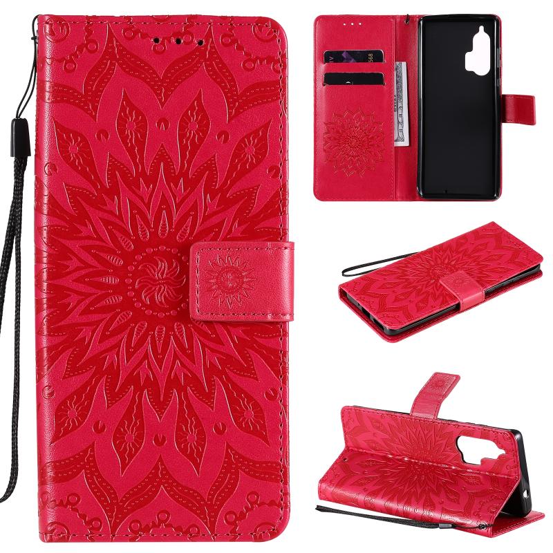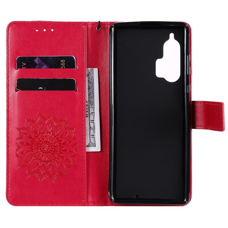 For Motorola Edge Plus Pressed Printing Sunflower Pattern Horizontal Flip PU Leather Case with Holder & Card Slots & Wallet & Lanyard(Red)