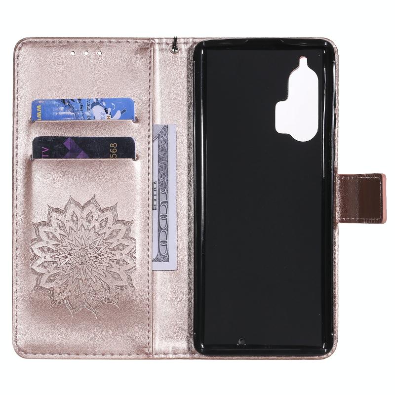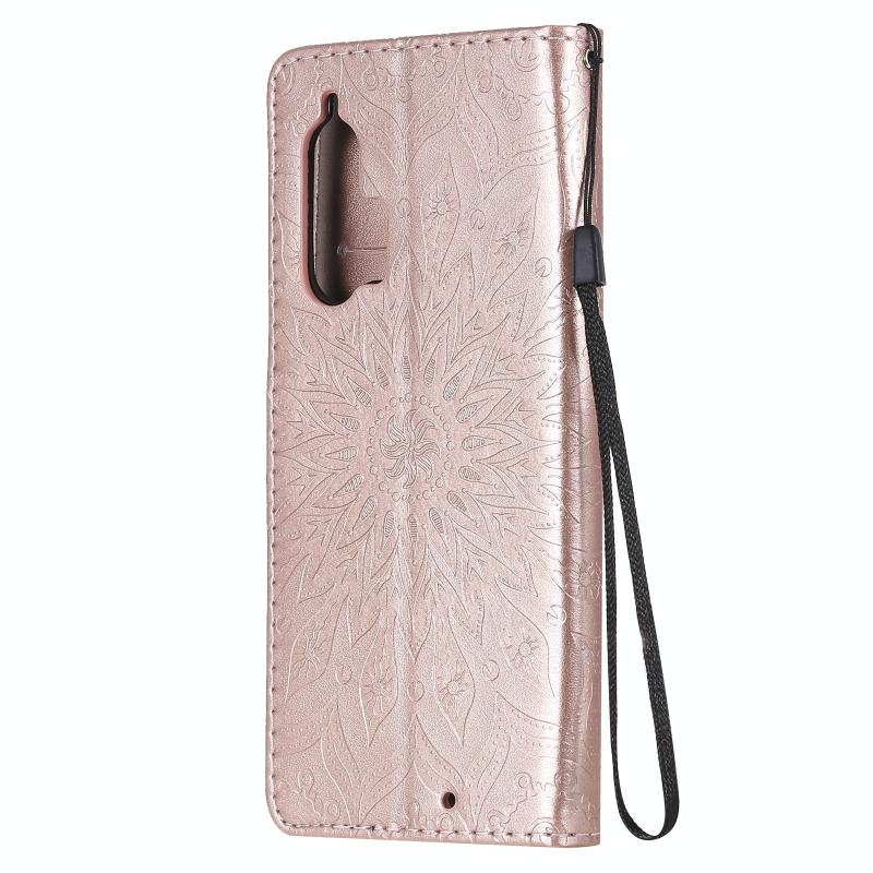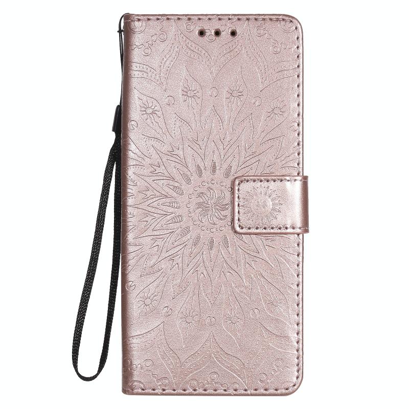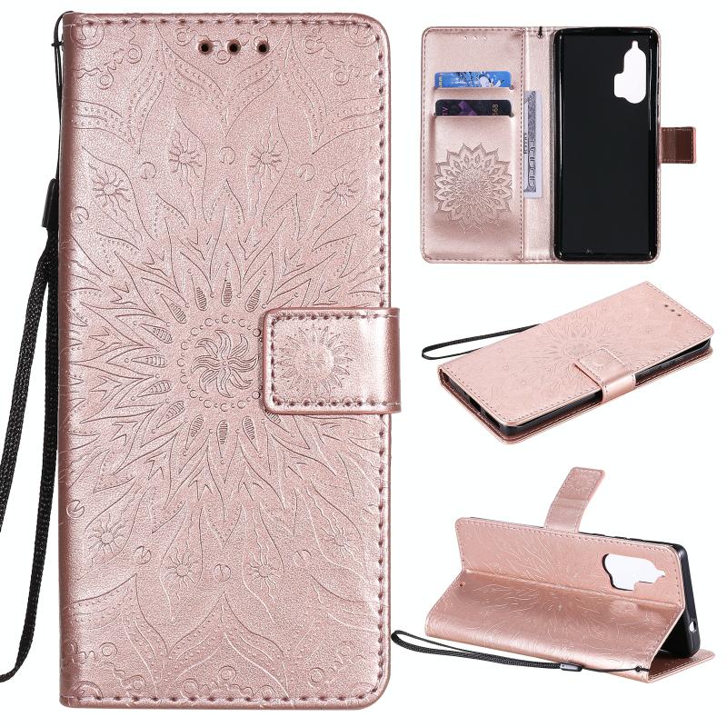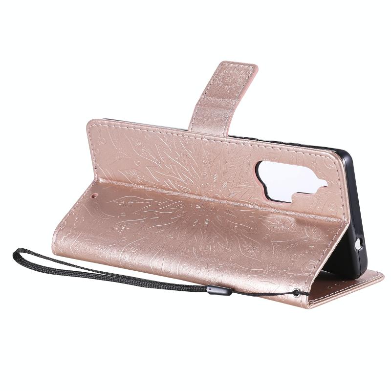 For Motorola Edge Plus Pressed Printing Sunflower Pattern Horizontal Flip PU Leather Case with Holder & Card Slots & Wallet & Lanyard(Rose Gold)