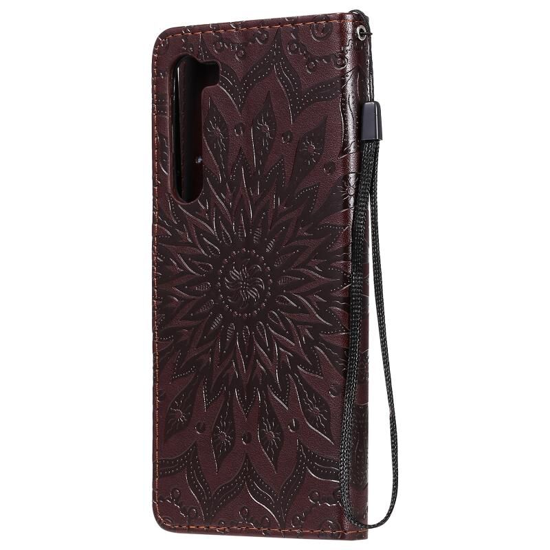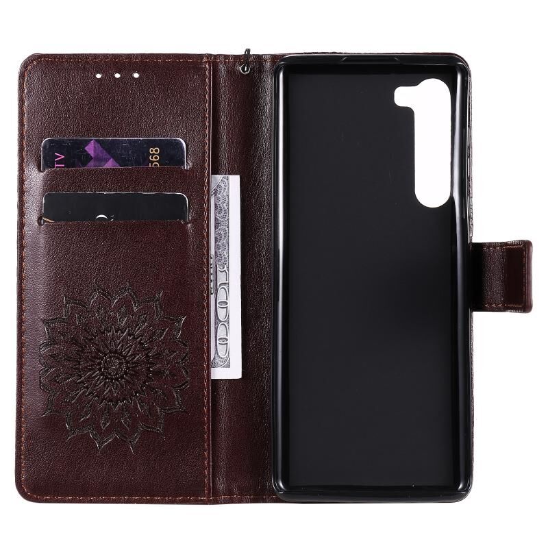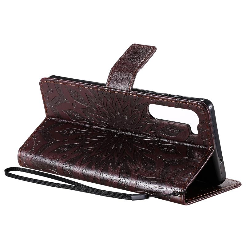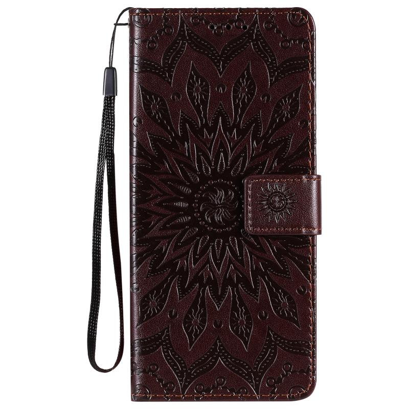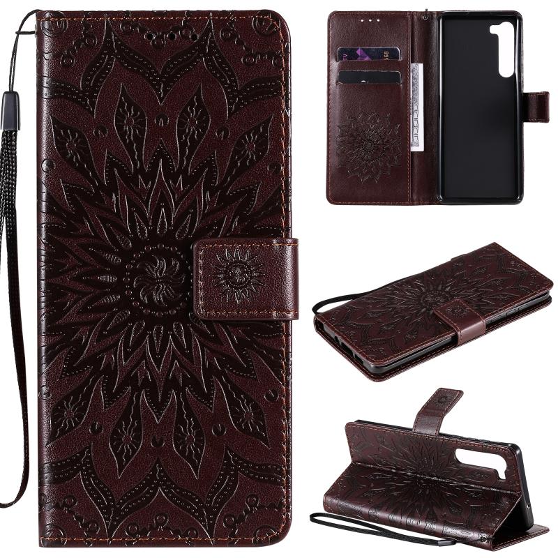 For Motorola Edge Pressed Printing Sunflower Pattern Horizontal Flip PU Leather Case with Holder & Card Slots & Wallet & Lanyard(Brown)