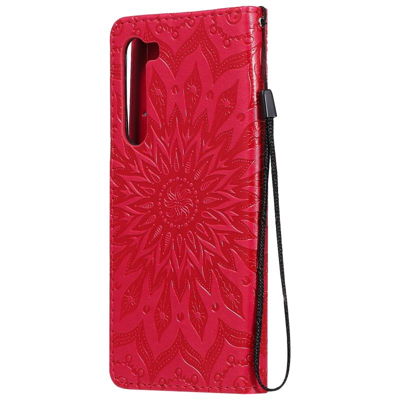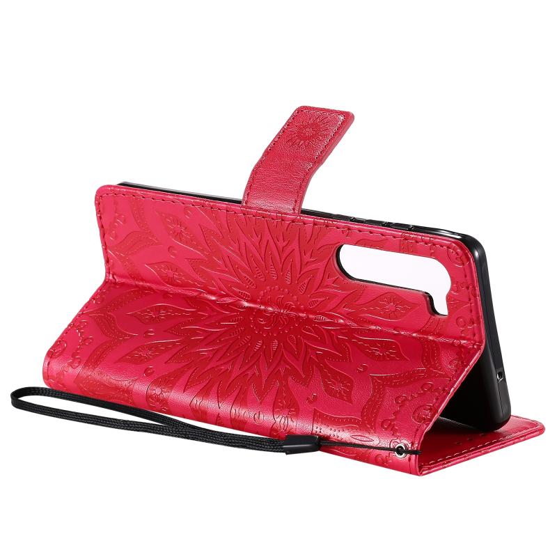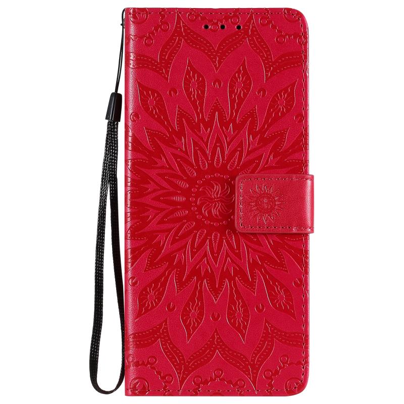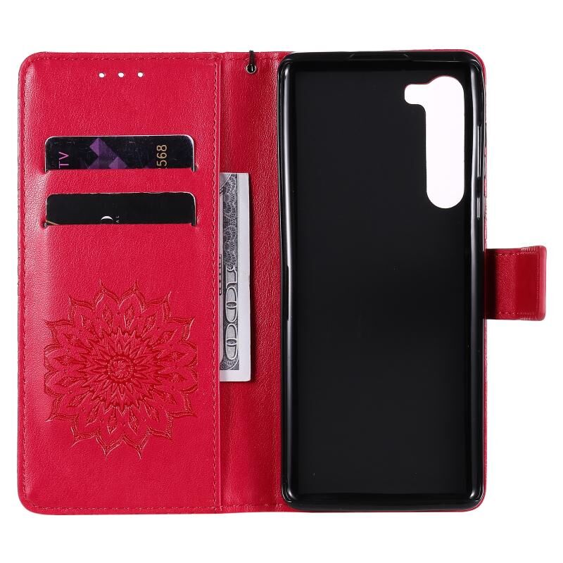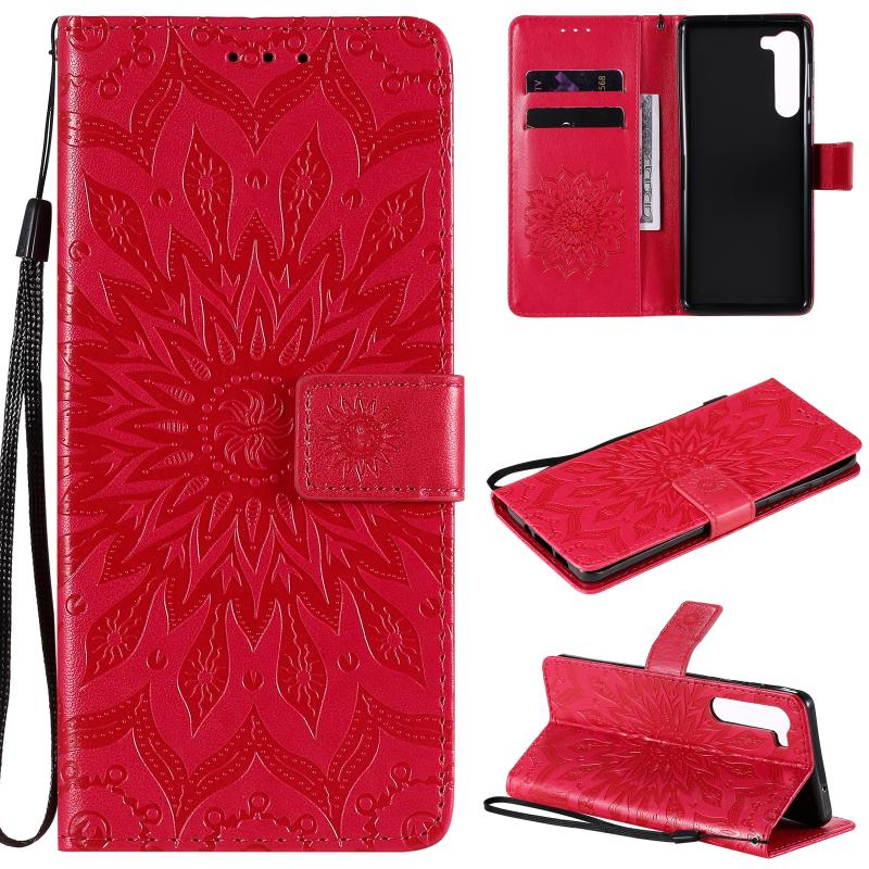 For Motorola Edge Pressed Printing Sunflower Pattern Horizontal Flip PU Leather Case with Holder & Card Slots & Wallet & Lanyard(Red)