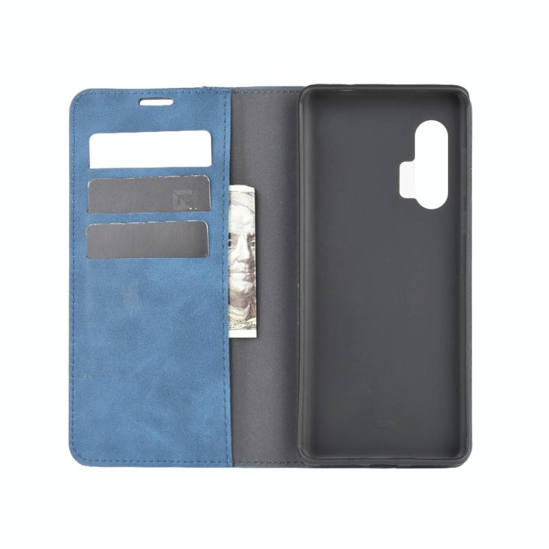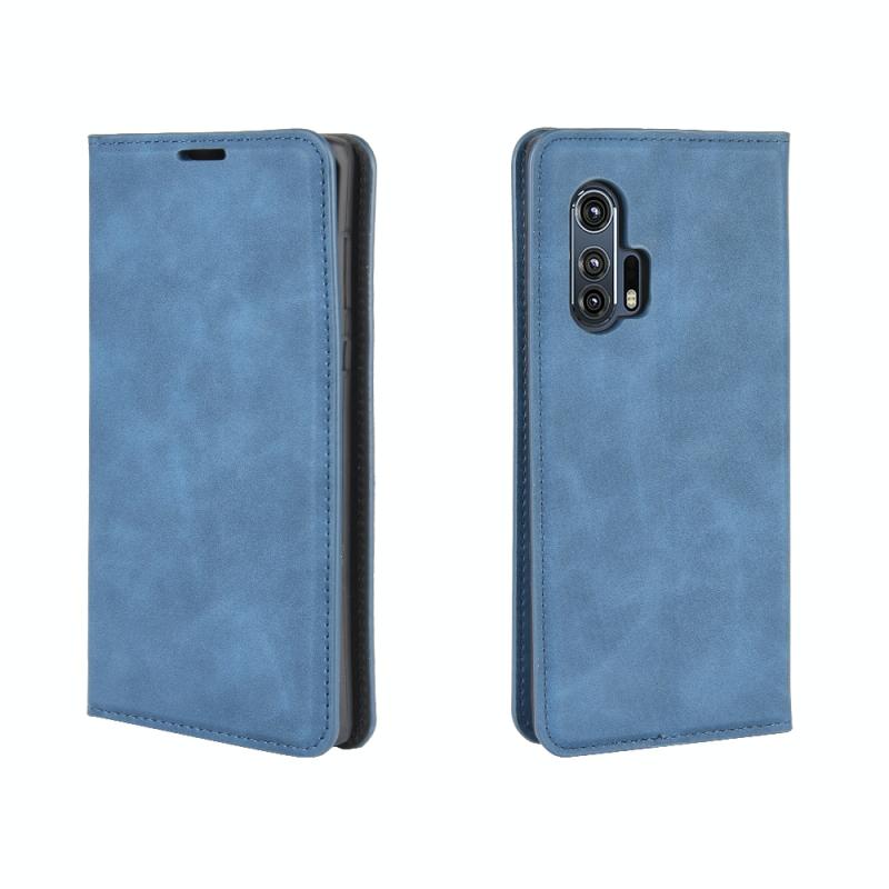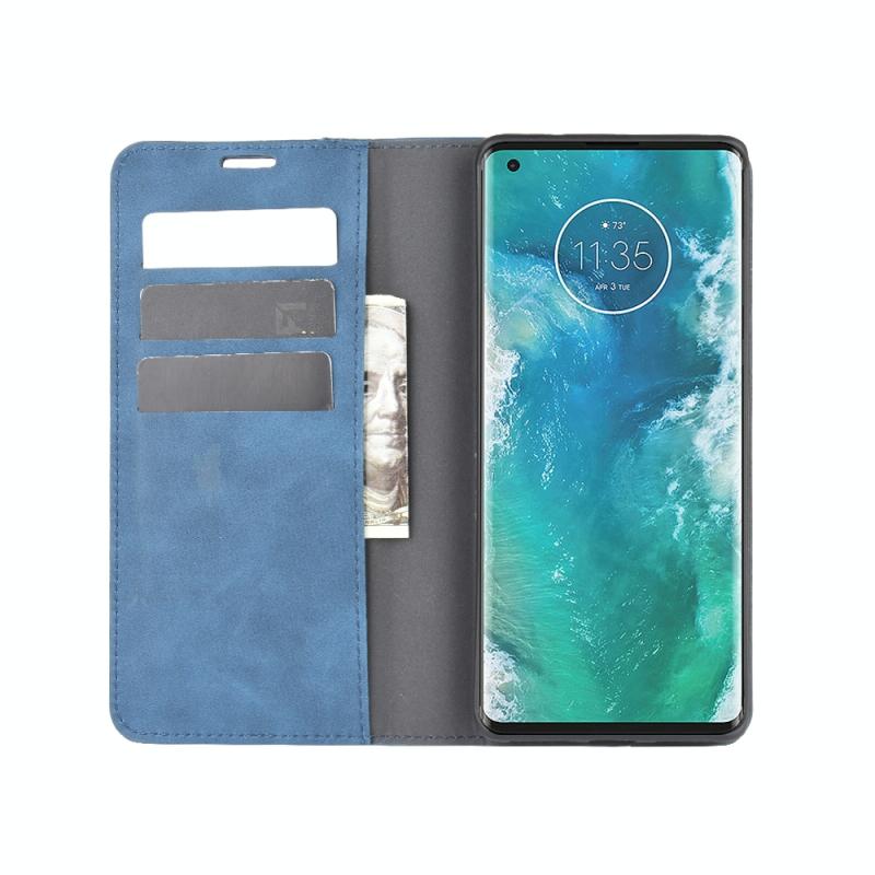 For Motorola Edge+ Retro-skin Business Magnetic Suction Leather Case with Holder & Card Slots & Wallet(Dark Blue)