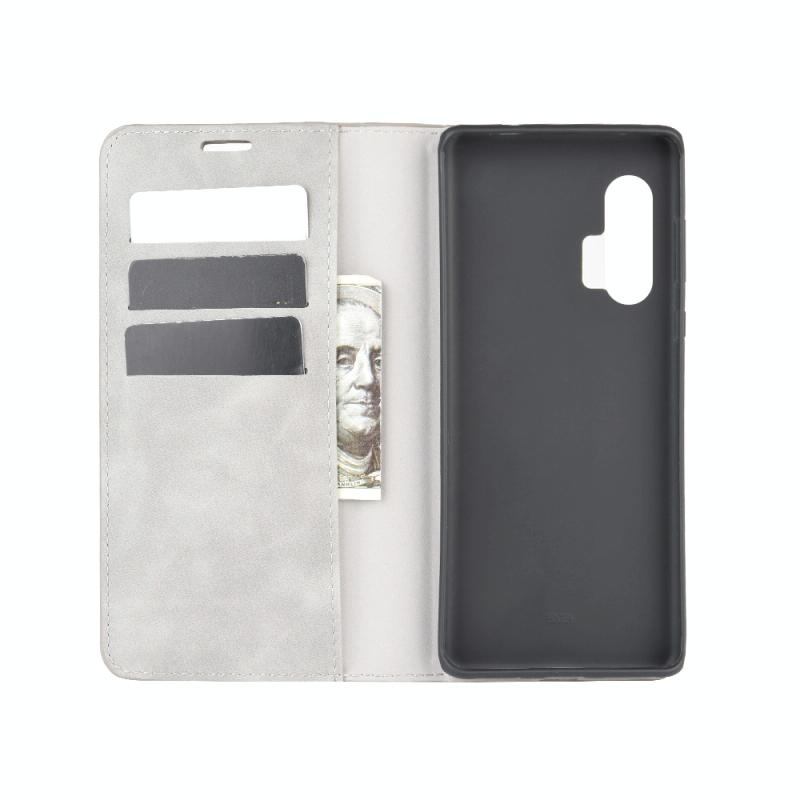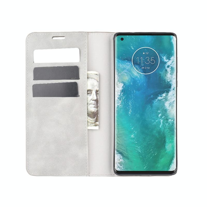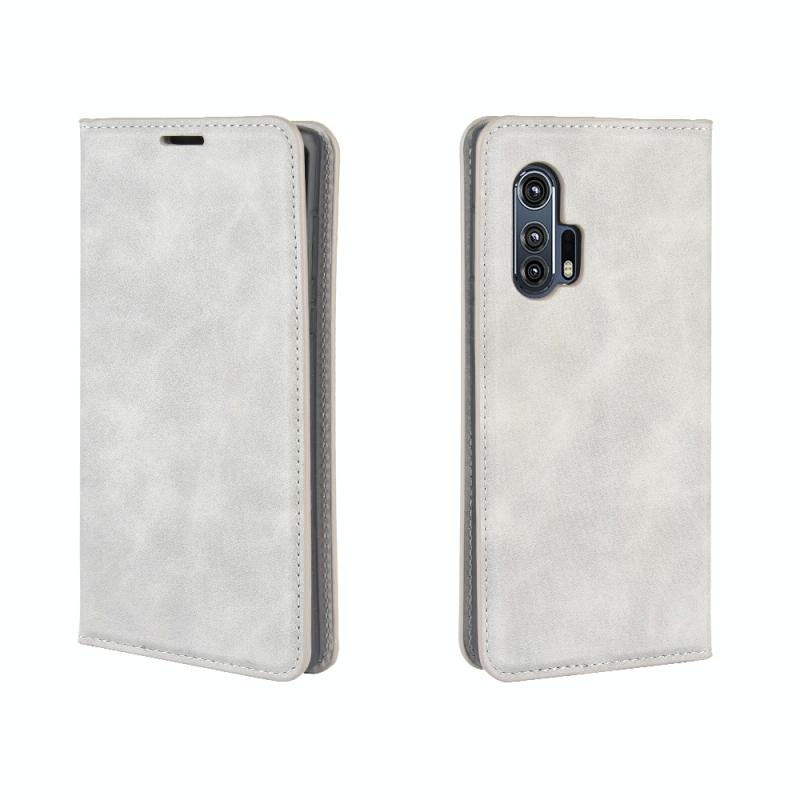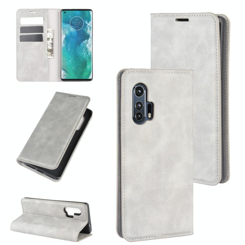 For Motorola Edge+ Retro-skin Business Magnetic Suction Leather Case with Holder & Card Slots & Wallet(Grey)