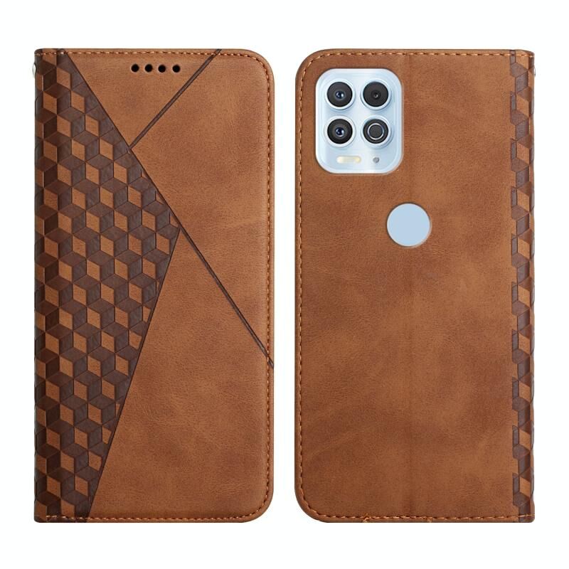 For Motorola Edge S Diamond Pattern Splicing Skin Feel Magnetic Horizontal Flip Leather Case with Card Slots & Holder & Wallet(Brown)