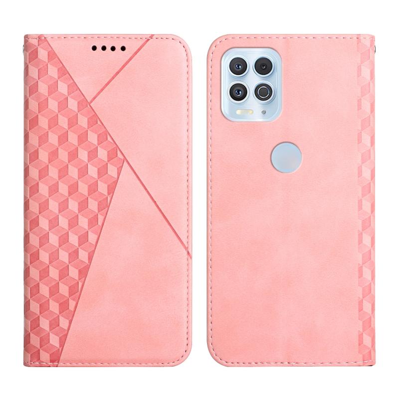 For Motorola Edge S Diamond Pattern Splicing Skin Feel Magnetic Horizontal Flip Leather Case with Card Slots & Holder & Wallet(Rose Gold)