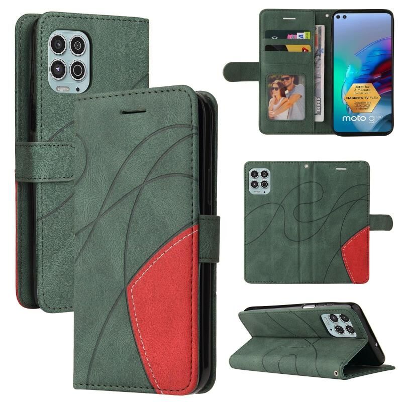 Για Motorola Edge S / Moto G100 Διπλό χρώμα Splicing οριζόντια Flip PU δέρμα υπόθεση με θήκη & υποδοχές για κάρτες & πορτοφόλι (πράσινο)