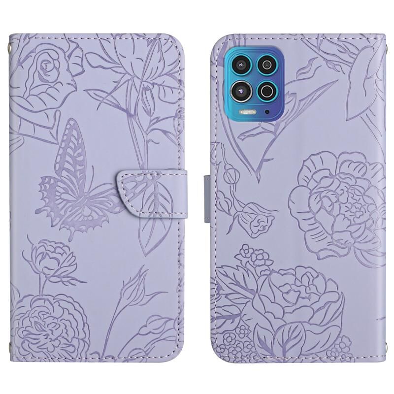 Θήκη κινητού τηλεφώνου από δέρμα με ανάγλυφο σχέδιο πεταλούδας και παιώνιας για Motorola Edge S (Κόκκινο)