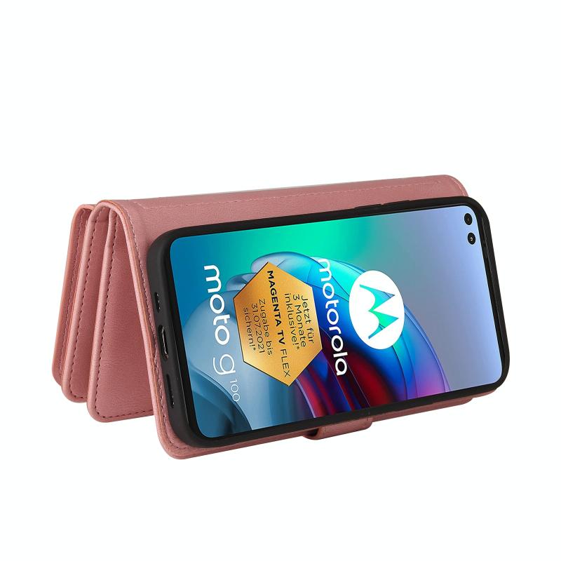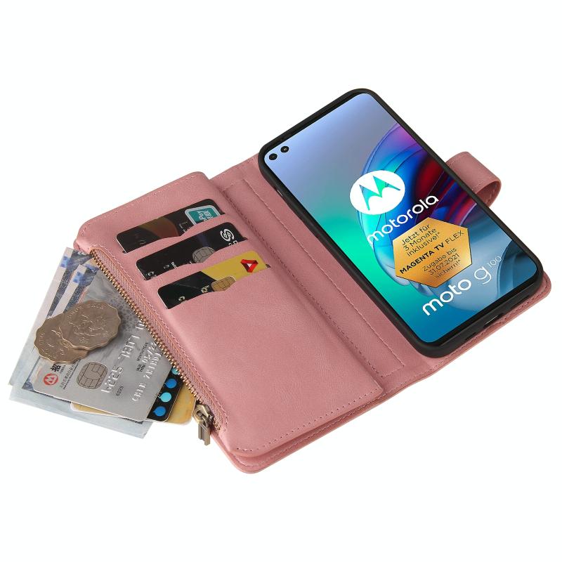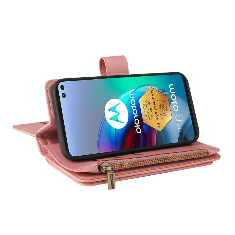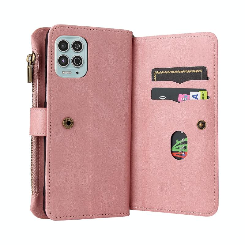 For Motorola Edge S Skin Feel PU + TPU Horizontal Flip Leather Case With Holder & 15 Cards Slot & Wallet & Zipper Pocket & Lanyard(Pink)