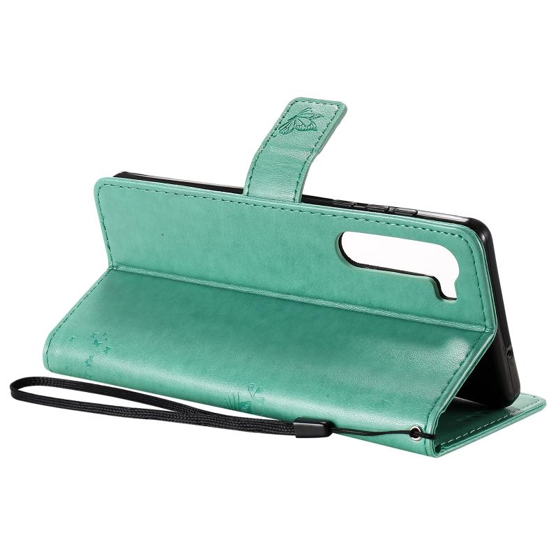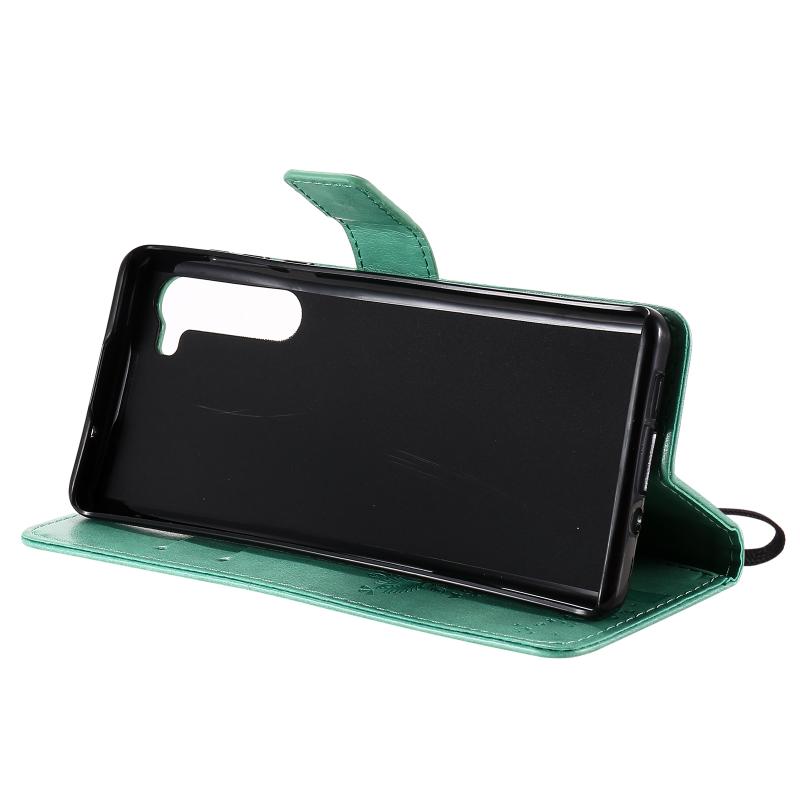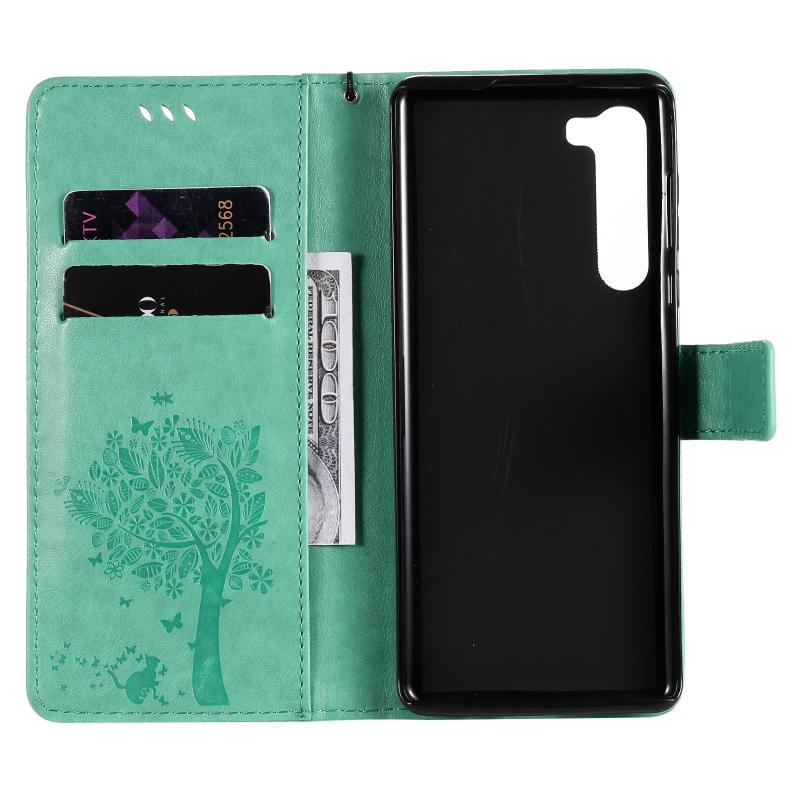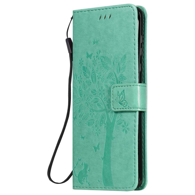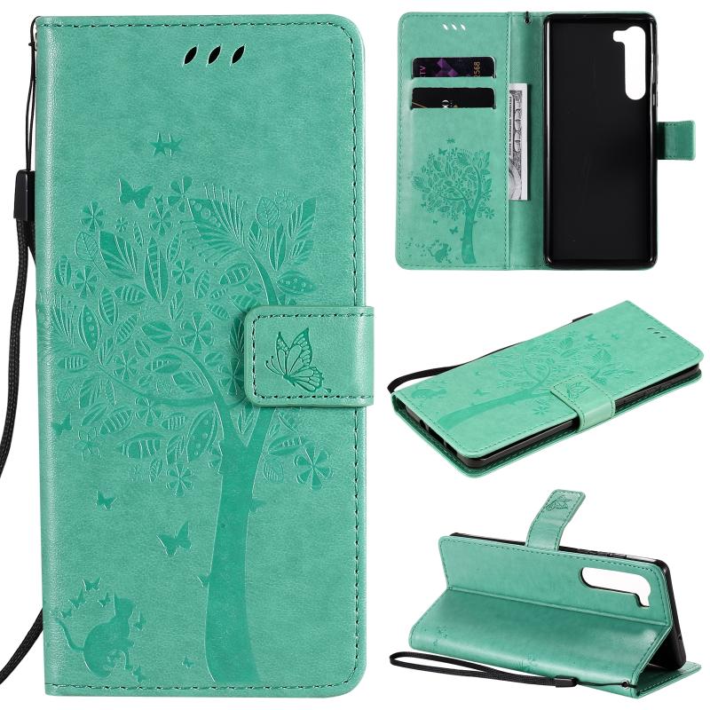Θήκη για Motorola Edge με σχέδιο Δέντρου & Γάτας, με ανάγλυφη εκτύπωση, οριζόντιο άνοιγμα, από δερματίνη PU με βάση στήριξης, θήκες για κάρτες, πορτοφόλι & λουρί (πράσινο)
