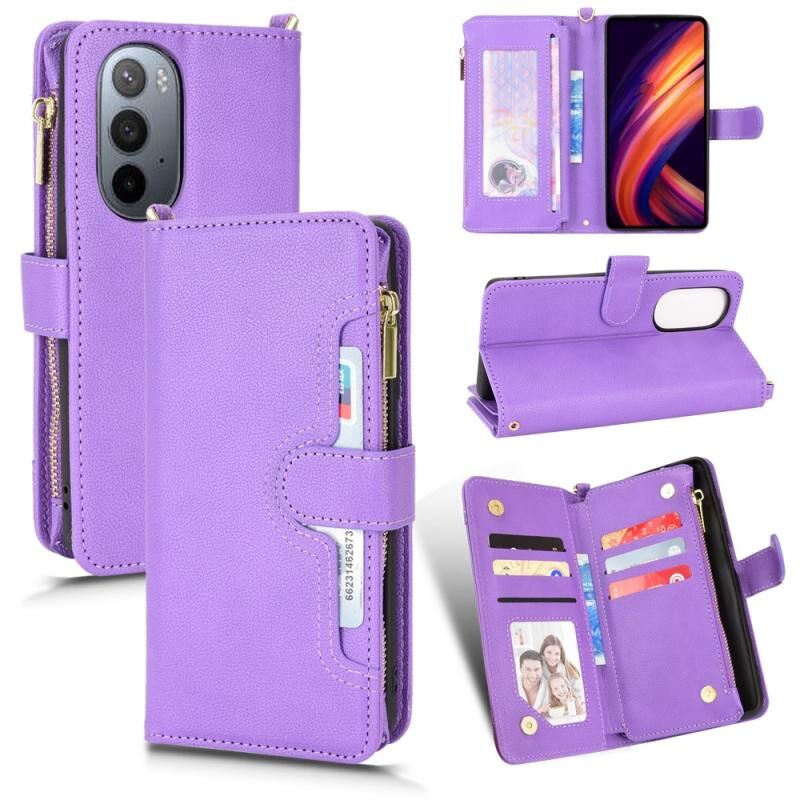 Για Motorola Edge X30 / Edge 30 Pro / Edge + 2020 Litchi υφή φερμουάρ δερμάτινη θήκη τηλεφώνου (μωβ)