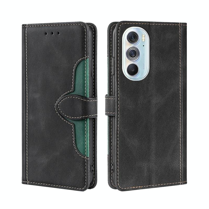 Θήκη κινητού τηλεφώνου από δέρμα με μαγνητικό κούμπωμα και καπέλο από άχυρα για Motorola Edge X30 (Μαύρο)