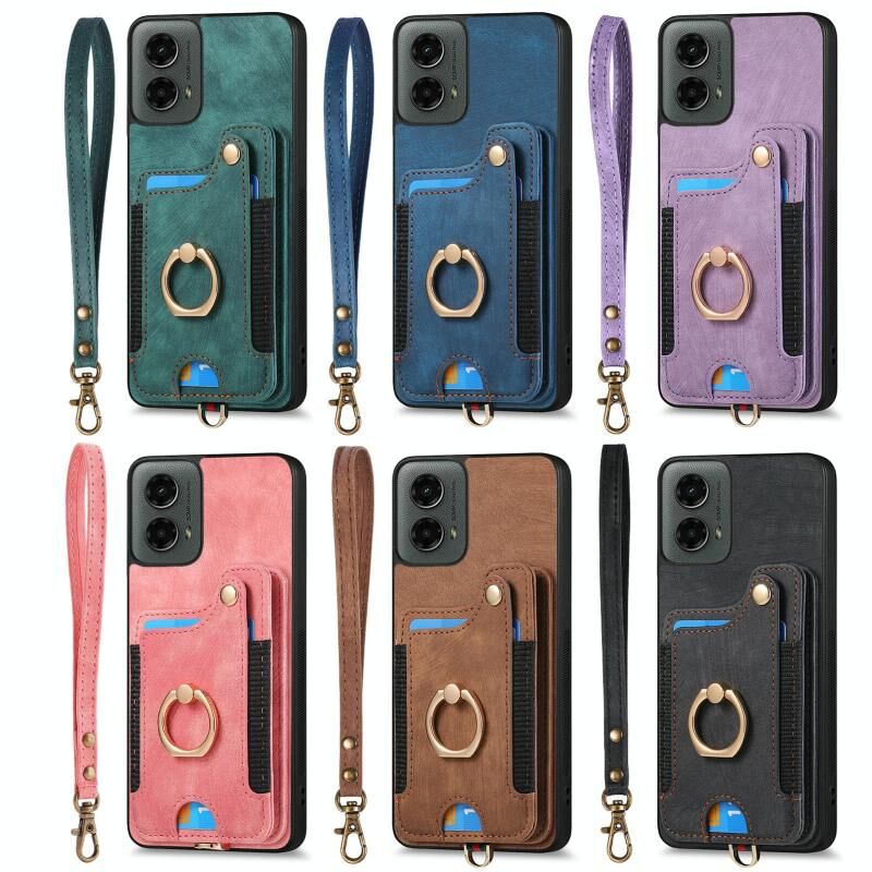 Για Motorola G Play 2024 Ρετρό δέρμα αίσθηση δαχτυλίδι δαχτυλίδι πολλαπλών καρτών RFID πορτοφόλι υπόθεση τηλεφώνου (Μαύρο)