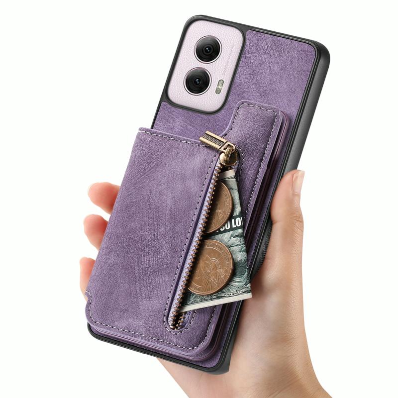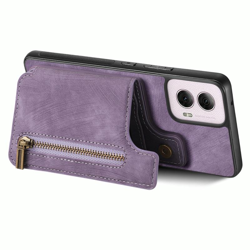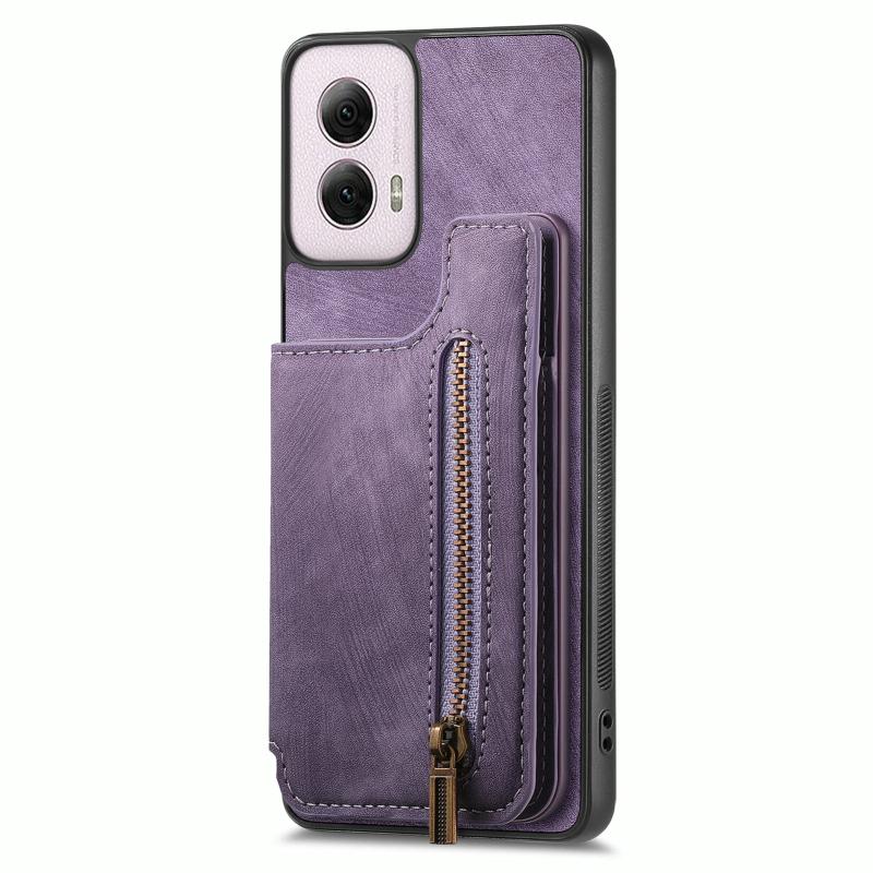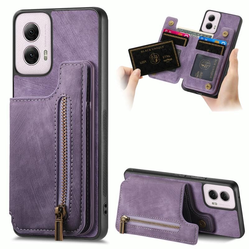 Για Motorola G Power 5G 2024 Δερμάτινη Θήκη Πορτοφόλι με Φερμουάρ (Μωβ)