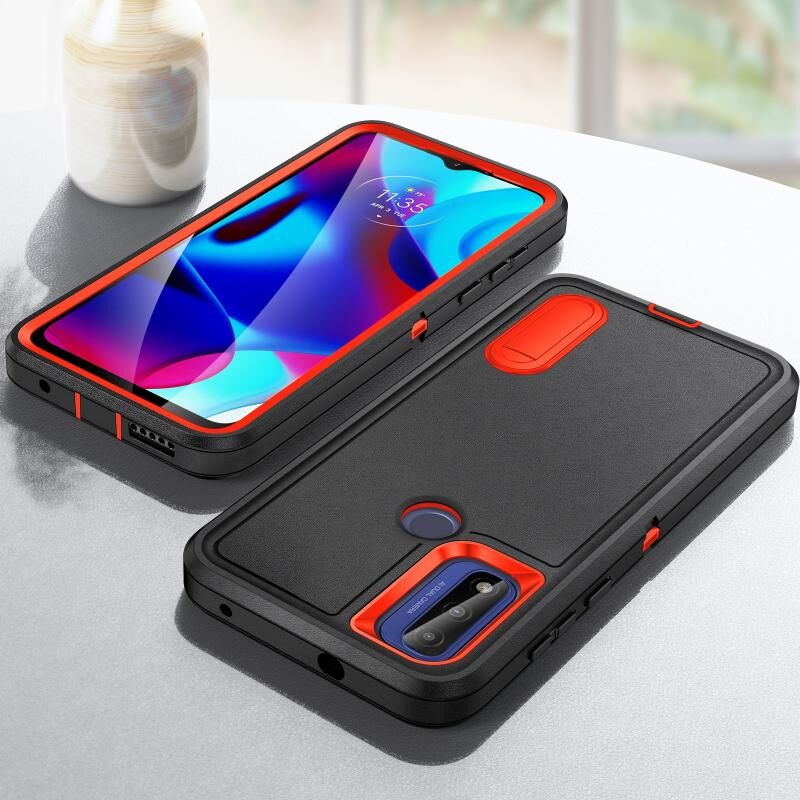 Για Motorola G Pure 2021 Ανθεκτική θήκη τηλεφώνου PC + σιλικόνης με θήκη (μαύρο+πορτοκαλί)