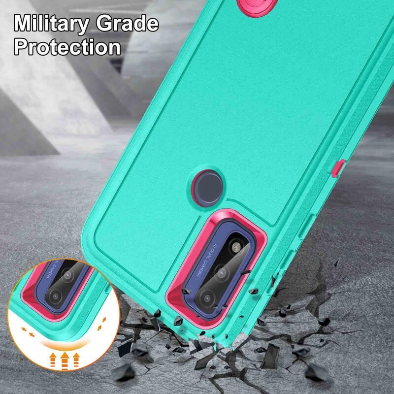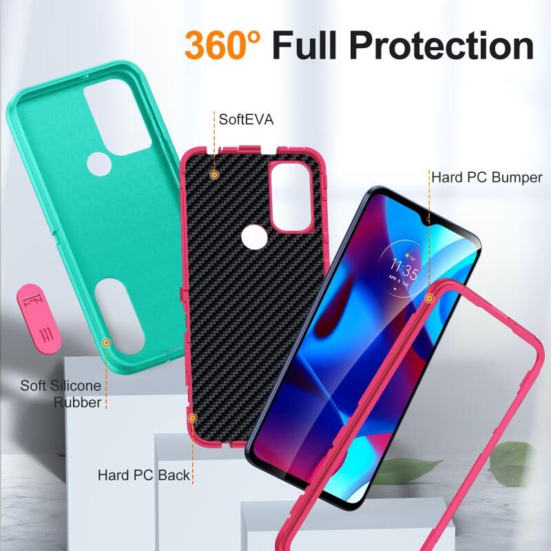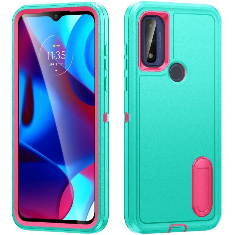 Για Motorola G Pure 2021 Ανθεκτική θήκη τηλεφώνου PC + σιλικόνης με θήκη (ανοιχτό πράσινο + ροζ κόκκινο)