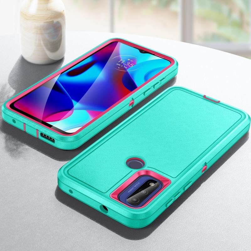 Για Motorola G Pure 2022 Life Αδιάβροχη αδιάβροχη θήκη τηλεφώνου PC + σιλικόνης (μπλε + ροζ)