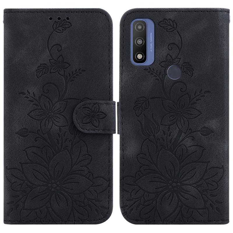 For Motorola G Pure Lily Embossed Leather Phone Case(Black)