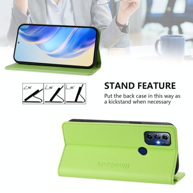 Θήκη τηλεφώνου δερμάτινη με μαγνητική απορρόφηση και διπλή πτυχή για Motorola G Pure / Moto G Play 2023 RC01 (Μέντας Πράσινο)
