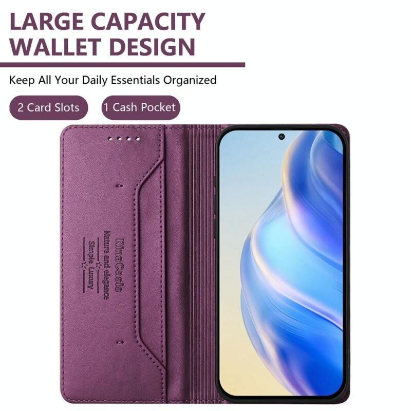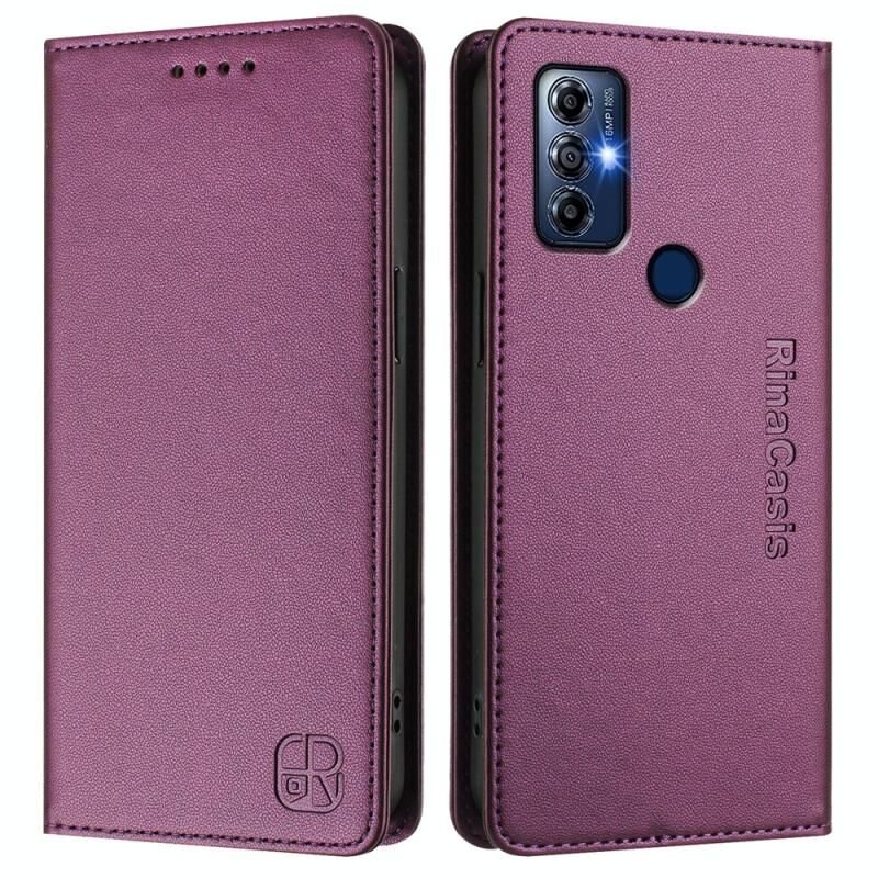 Θήκη τηλεφώνου δερμάτινη με μαγνητική απορρόφηση και διπλή πτυχή για Motorola G Pure / Moto G Play 2023 RC01 (Βιολετί)